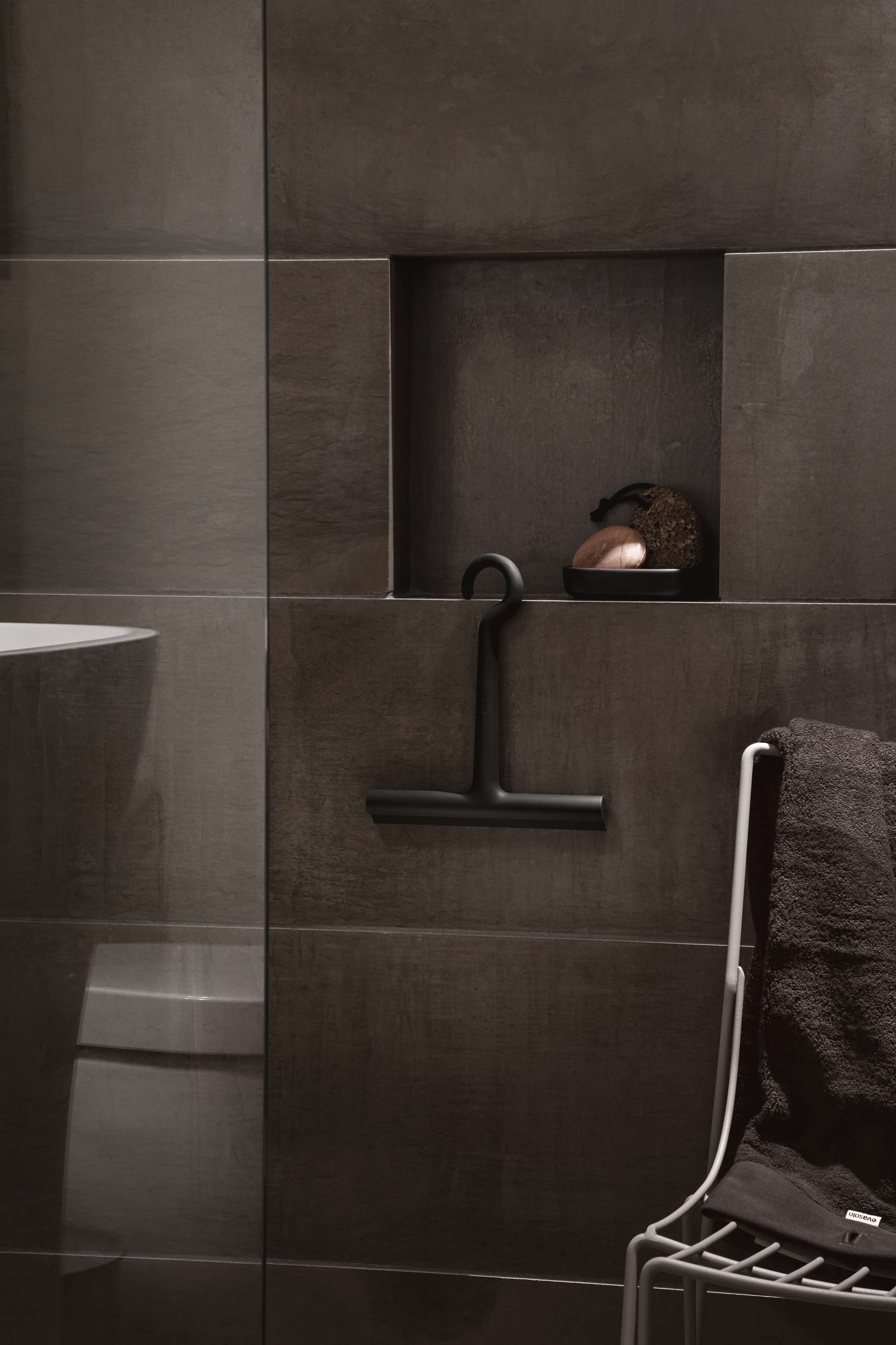Dank des flexiblen Hakens am Griff lässt sich der Abzieher leicht an der Duschkabinentür oder der Armatur anhängen und ist somit stets griffbereit.