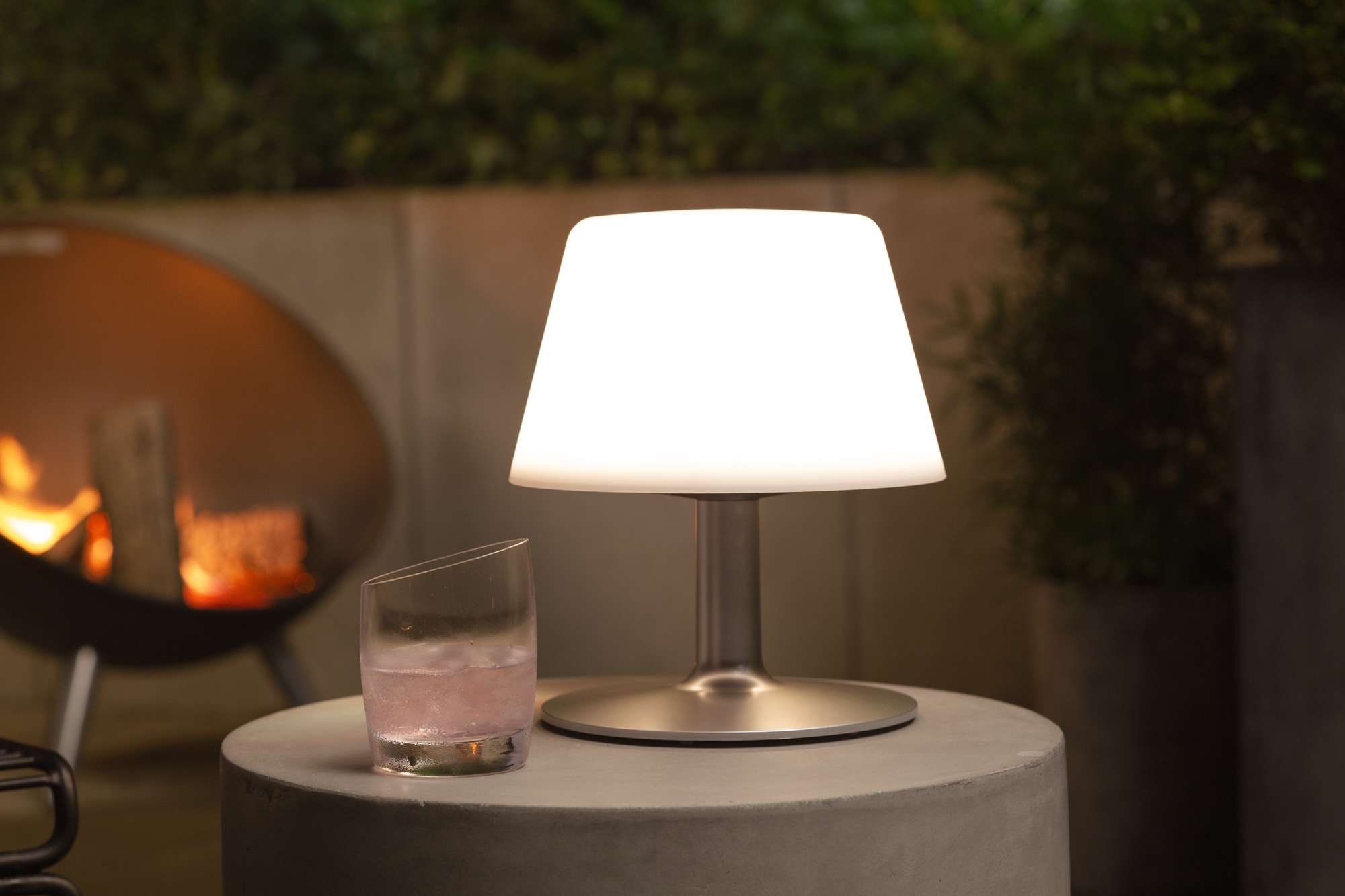 Die Lampe ist 100 % solarbetrieben, mit integrierten und versteckten Solarzellen, und lädt sich tagsüber in der Sonne auf – oder über USB-C (Ladekabel ist enthalten). Die Lampe ist kabellos und verfügt über praktische Funktionen wie einen Dämmerungssensor (die Lampe schaltet sich automatisch ein, wenn es dunkel wird), 3 Helligkeitsstufen und eine automatische Abschaltung nach 6 Stunden, um Energie zu sparen.
