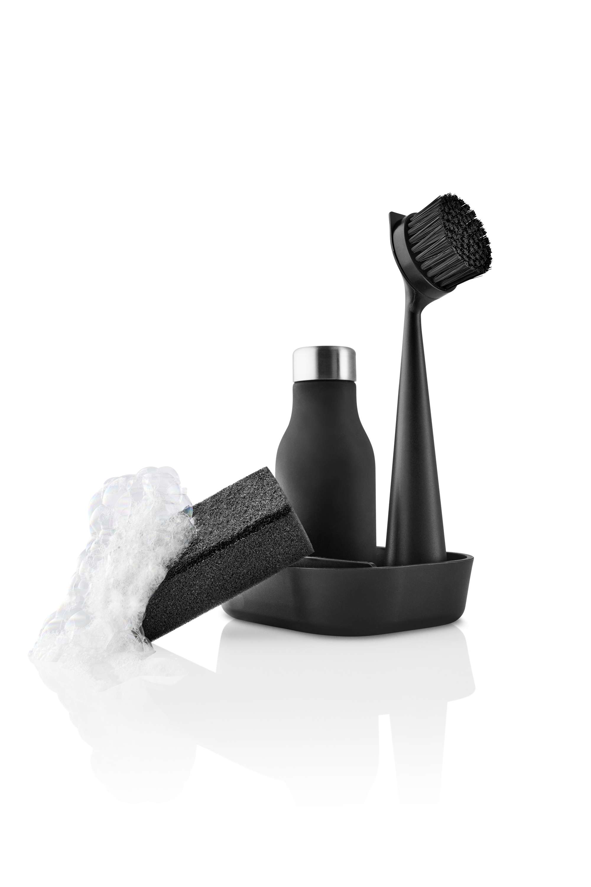 The washing up brush has a practical and effective edge to help scrape away stubborn debris and ensure a high standard of kitchen hygiene. The soft but durable nylon bristles are fast-drying when the brush is stored upright. A weight in the base ensures that it stands stably. The brush is easy to clean and maintain and withstands high temperatures and is dishwasher-safe. The brush head is replaceable.