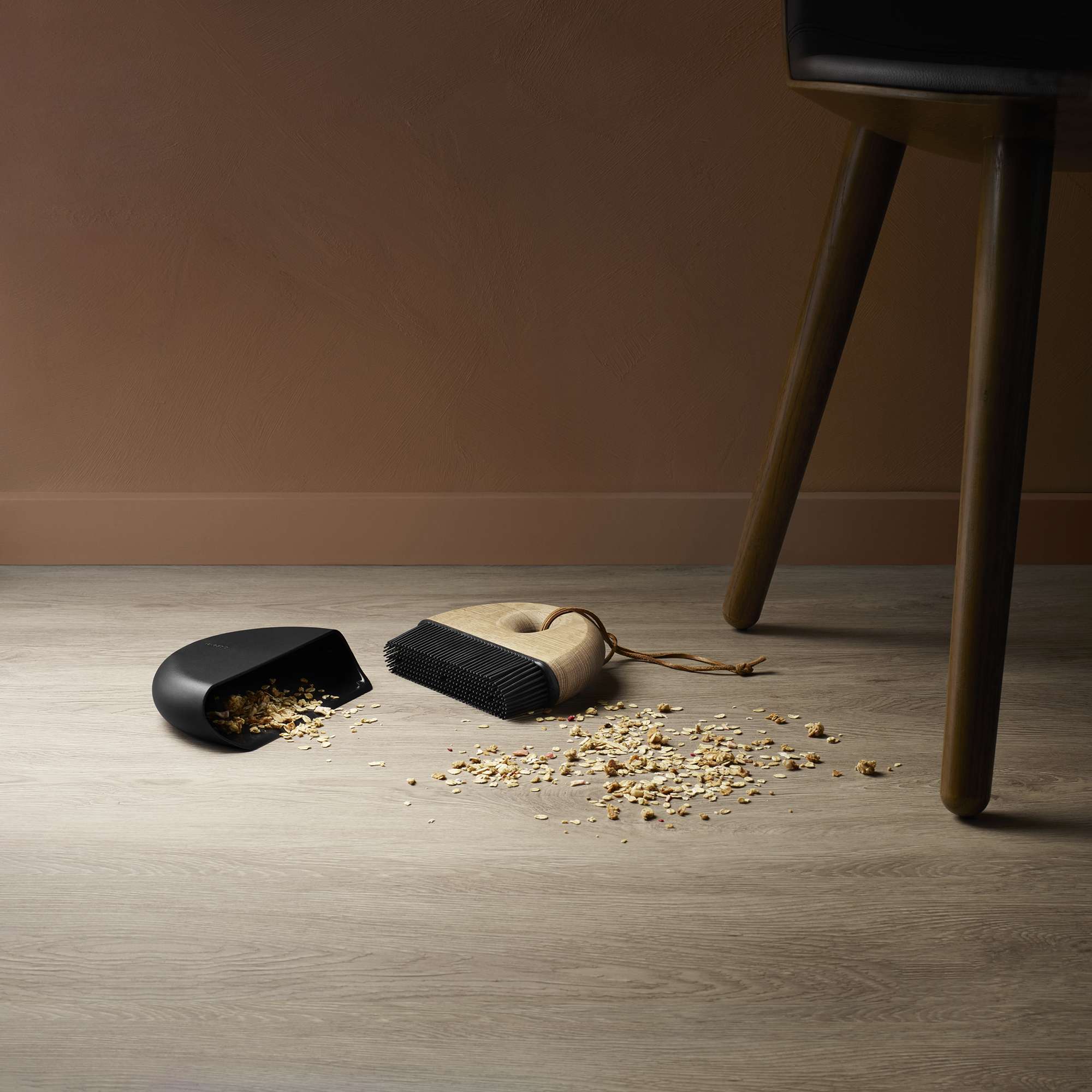 The brush features silicone bristles, which can be used for both wet and dry, while the dustpan is designed with a sharp edge so that it’s easy to sweep up dust and dirt into the pan. When not in use, the brush can be stored inside the dustpan to save space. The integrated leather cord can be used for hanging up the set so it is always within easy reach.