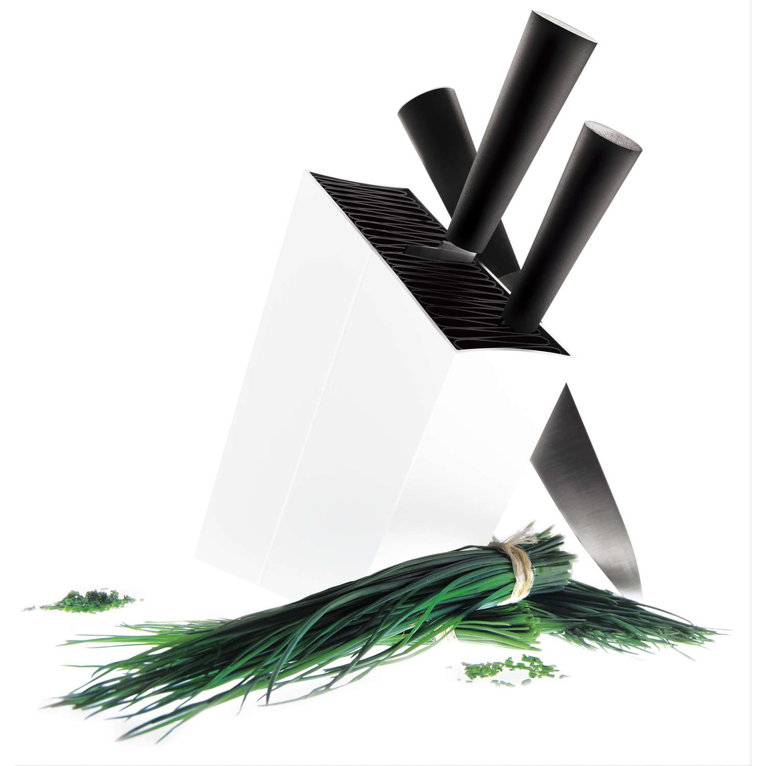 For all kinds of knives and other utensils. A white anodized aluminium box with a fold-up plastic inserts which can be removed for cleaning. Inserts are dishwasher-proof. Use a damp cloth for clean base.