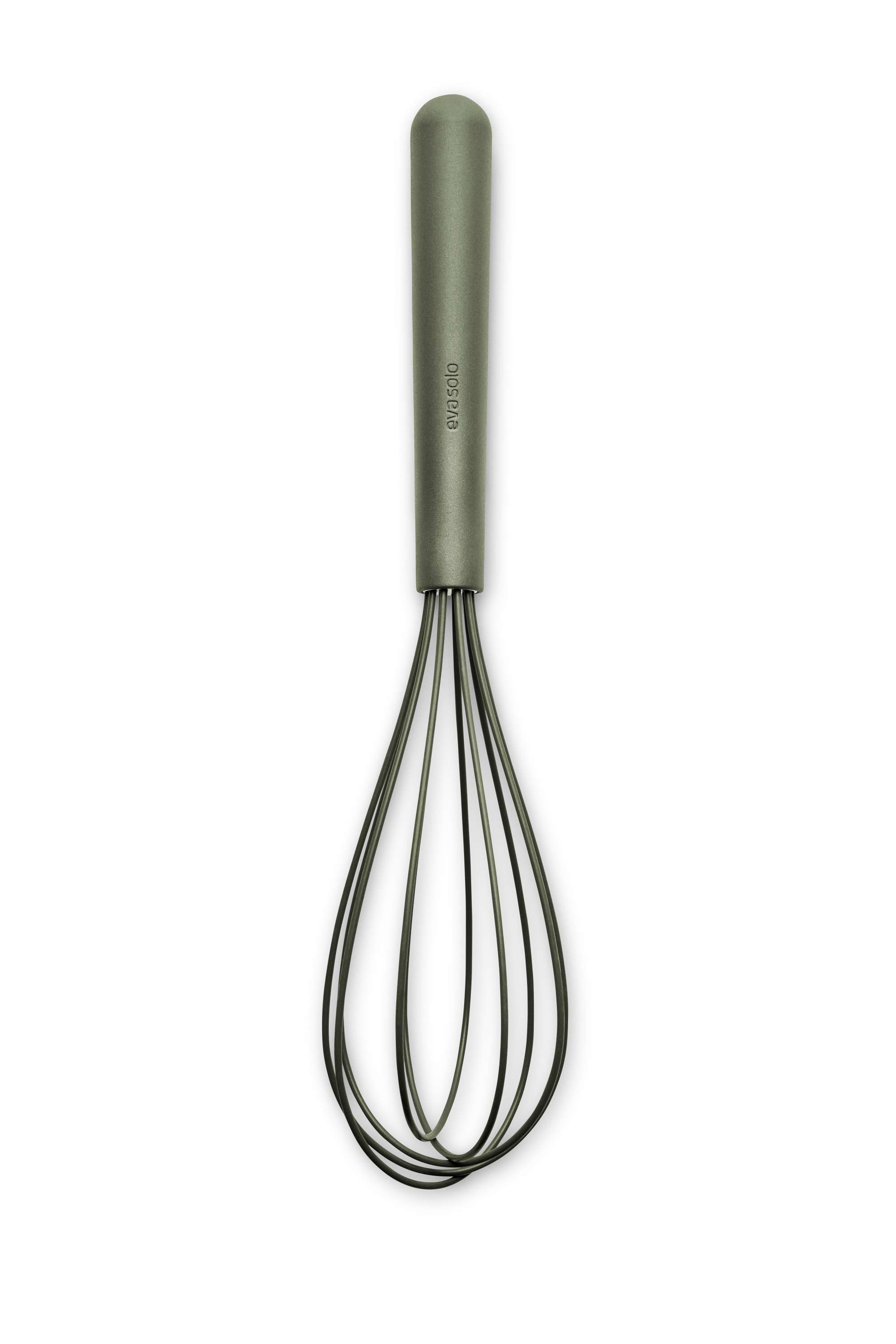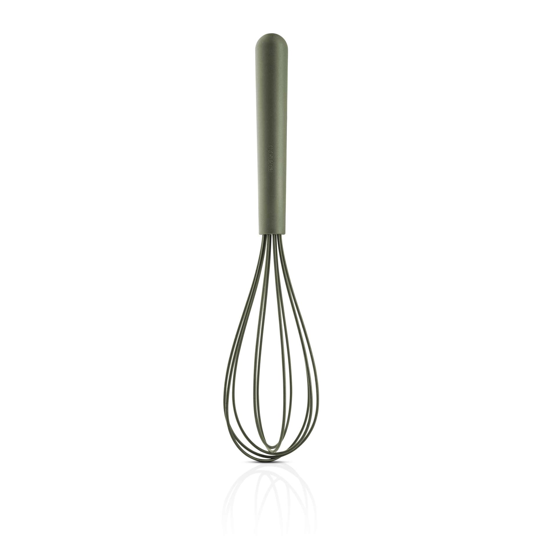 A functional whisk with a practical silicone coating for use in all pots and pans, including coated cookware, and heat-safe up to 250 degrees C. The whisk’s rounded handle provides a comfortable grip.