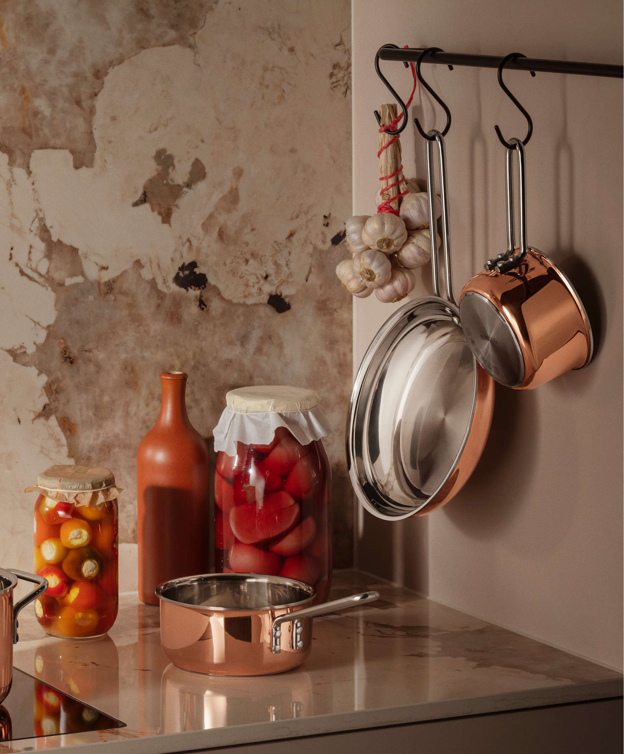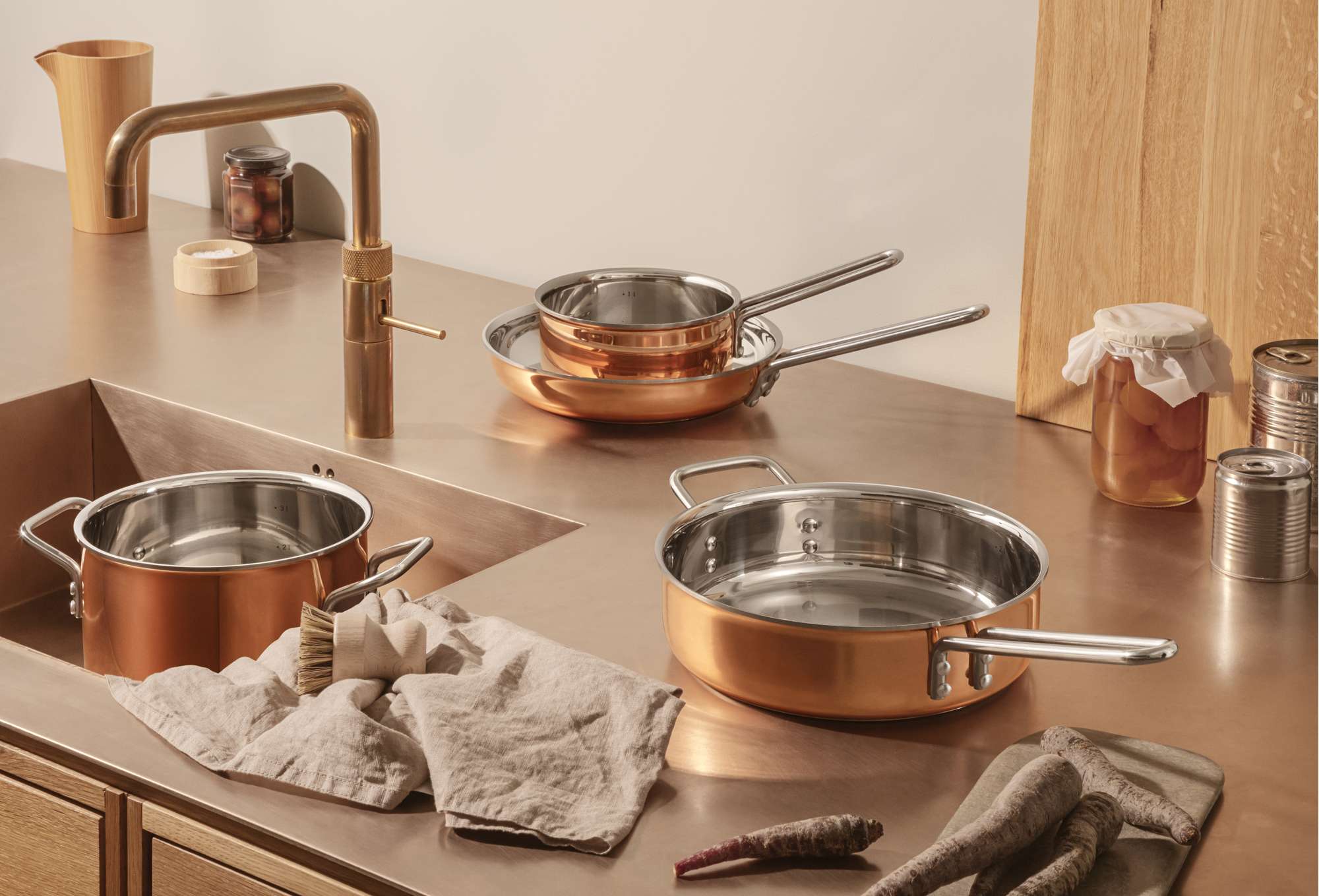 The series of pots and pans in copper is the ultimate cooking equipment – partly because of copper's unique cooking and frying properties. The copper also provides complete control over cooking because it responds quickly to changes in temperature - an important feature in the preparation of sauces and other extraordinary cooking.