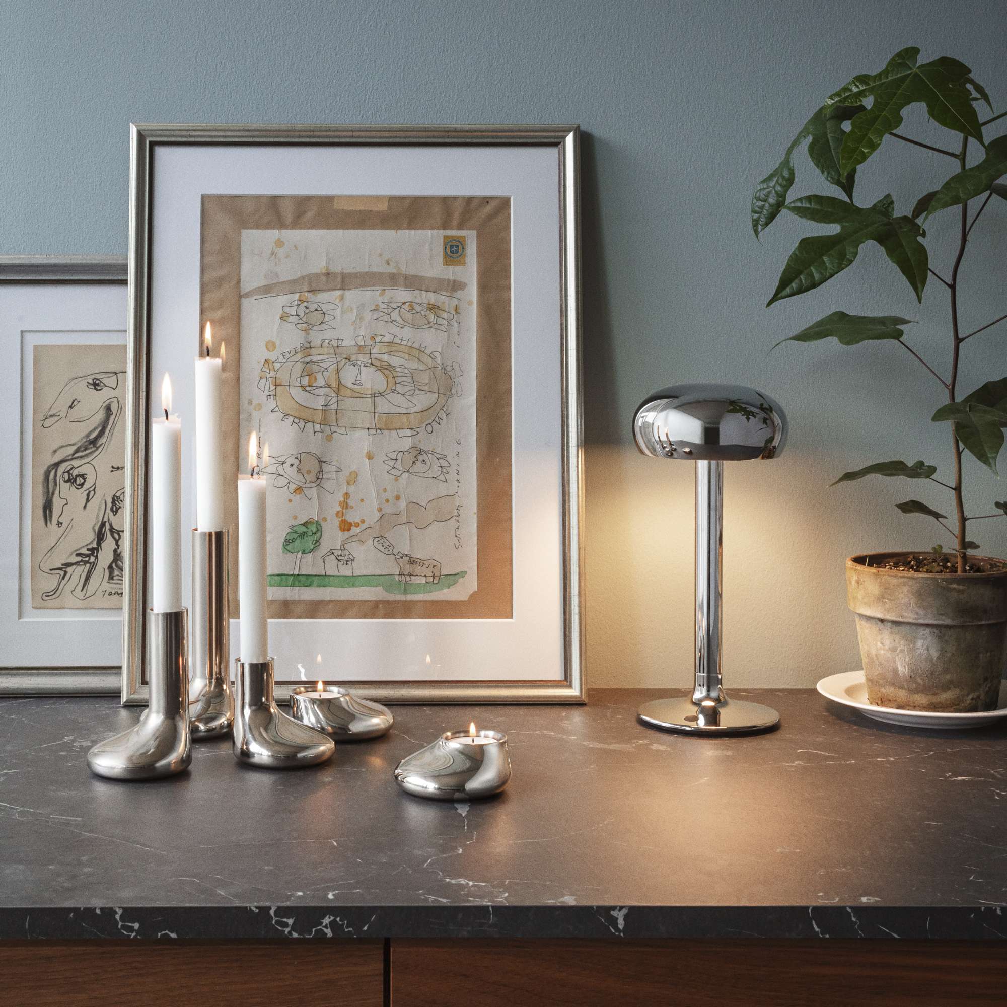Create a playful but balanced ambience in your interior by combining Mellow tealight holders and candlesticks of different sizes