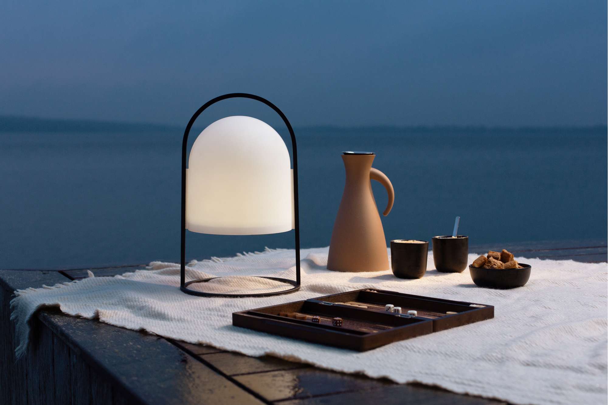 The lantern is 100% solar powered and comes with three different brightness levels. It also has a smart dusk sensor that automatically turns the light on when it gets dark and turns off again after six hours to save energy. During the day, the lantern is charged via the sun’s rays, but you can also charge it via the included 2.5-metre mini USB-C cable. When the lantern is fully charged – after approximately eight hours in the sun – it can light up for up to 20 hours. It is designed to withstand wind and weather, so you can have it outside all year round.