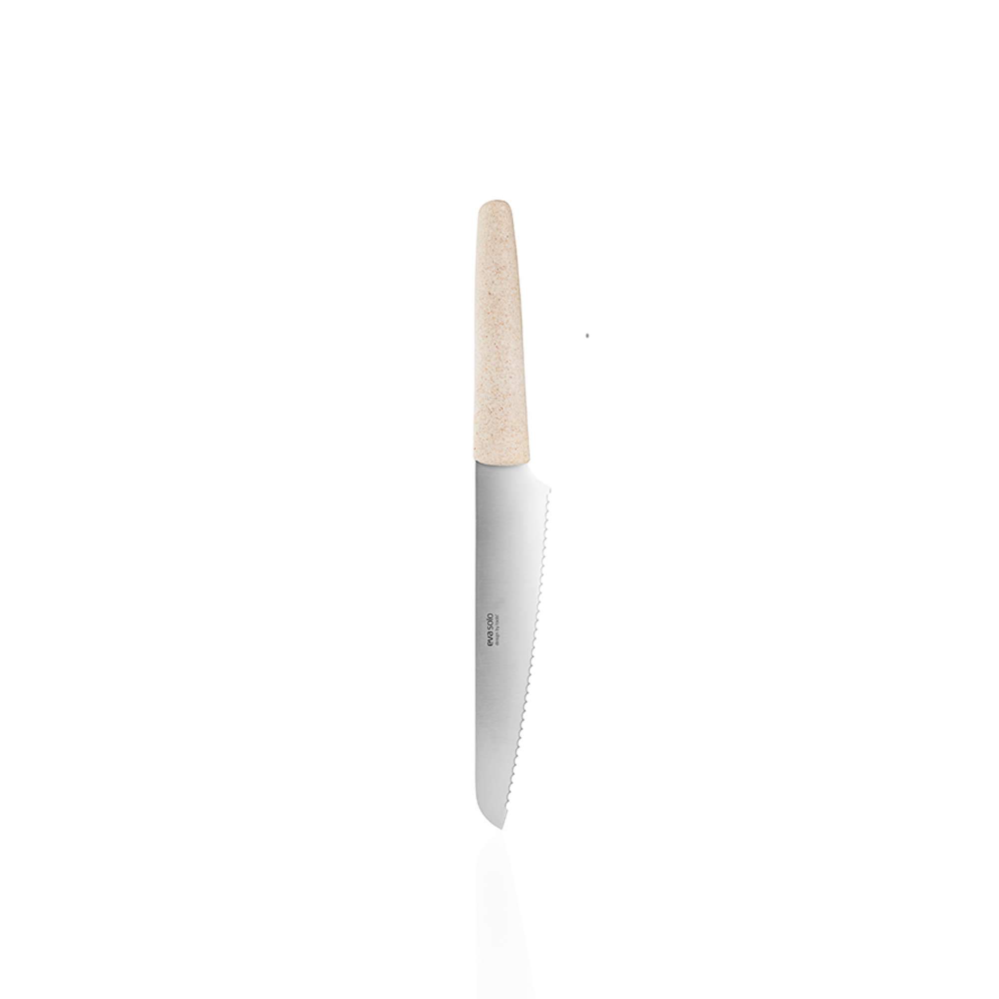 The serrated edge of this tomato knife easily cuts into tough tomato skins as well as other fruit and vegetables. The knife is ideal for cutting any food with a crust, rind or skin.