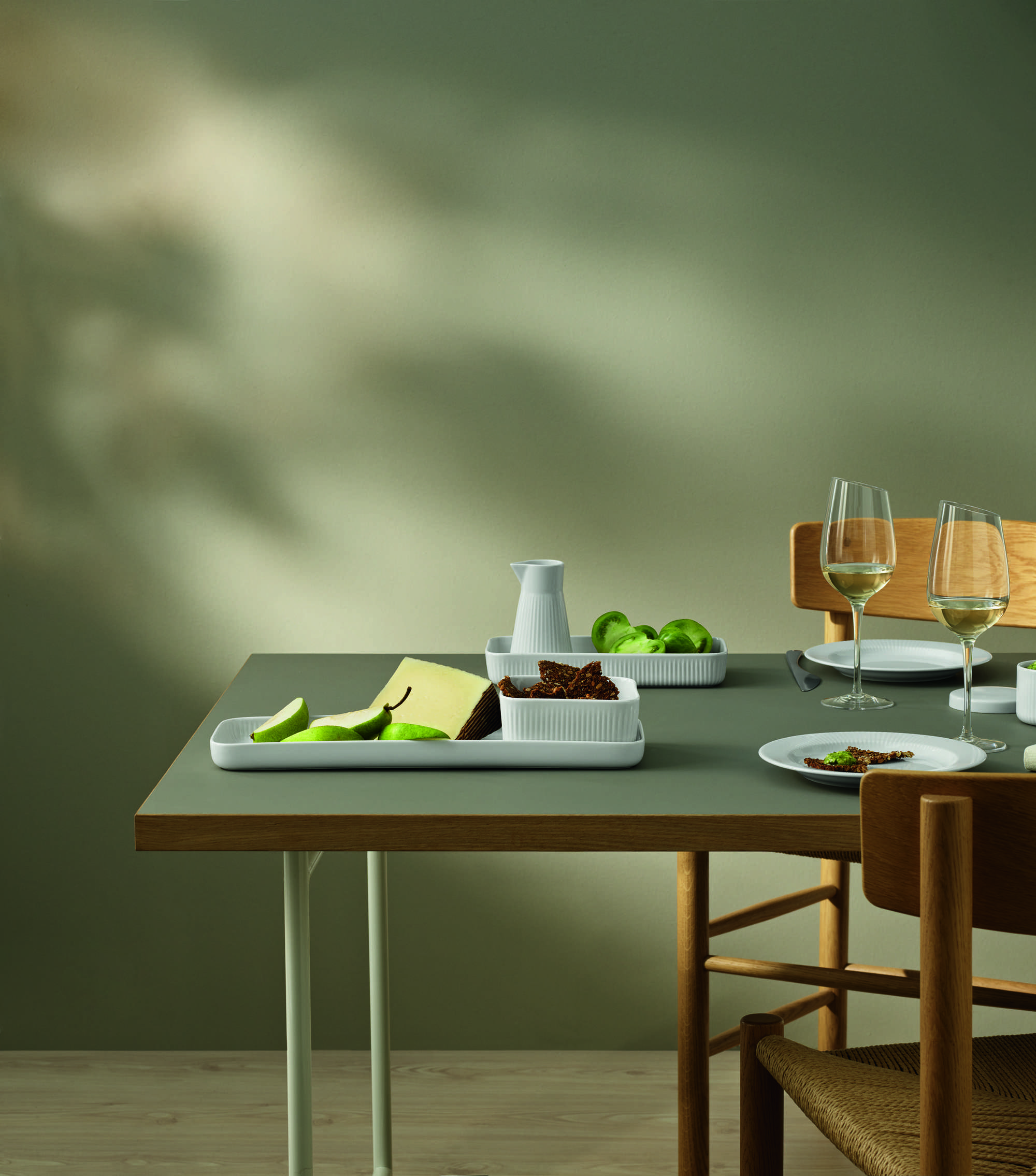 The dish can be combined with and even stacked inside the 37x13 cm rectangular Legio Nova serving dish.
