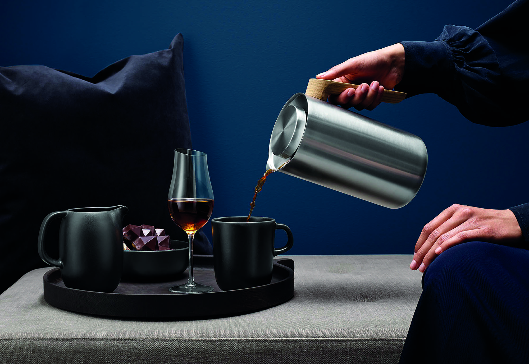 Nordic kitchen-serien bjuder på tre kannor i borstat rostfritt stål – pressokanna, vattenkokare och termoskanna, så att du alltid kan göra nybryggt kaffe och servera te på ett stilfullt sätt. Formspråket har inspirerats av nordiska designtraditioner och är minimalistiskt och stilrent. Det passar in perfekt i det nordiska köket. Designen är gjord just för att kunna stå framme i köket såväl som på bordet.